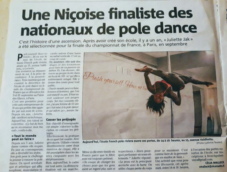 Une Niçoise finaliste des nationaux de Pole Dance Une Niçoise finaliste des championnats de France de Pole Dance – Nice Matin Extrait de l’article : https://www.nicematin.com/amp/sport/une-nicoise-finaliste-des-nationaux-de-pole-dance-162122